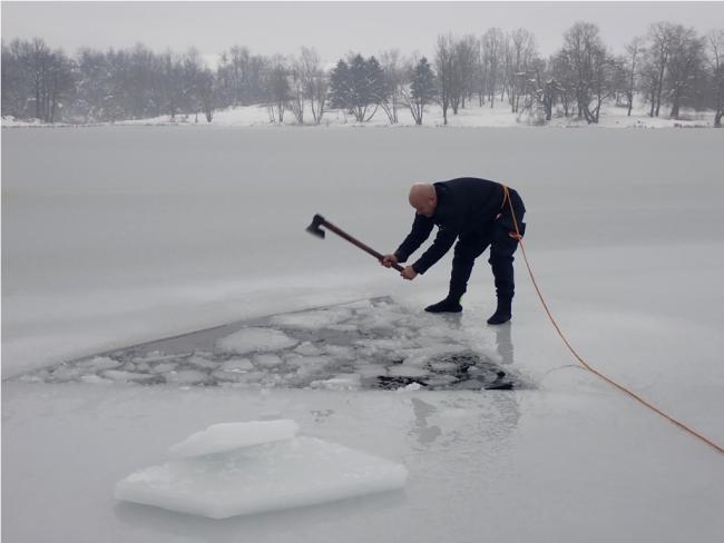 Debljina leda od 10 centimetara i temperatura vode od četiri stepena Celzijusa nisu predstavljali prepreku za ovakvu nesvakidašnju avanturu, koju posljednjih godina, zbog sve toplijih zima, sve rjeđe viđamo.