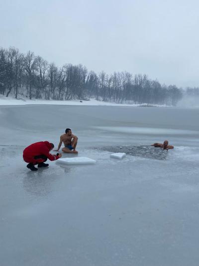 Nakon ronjenja, najhrabriji su se i okupali u zaleđenom jezeru.