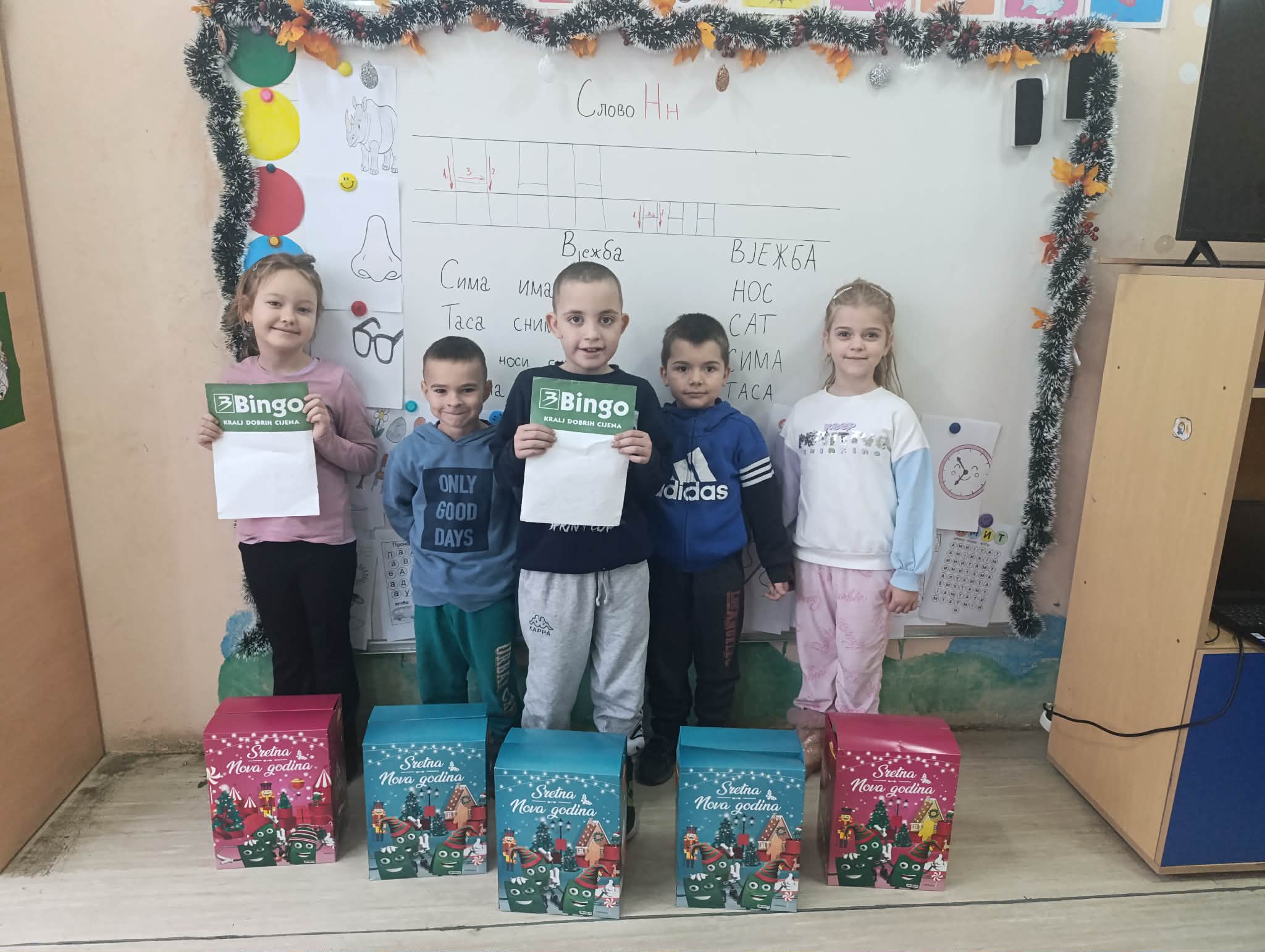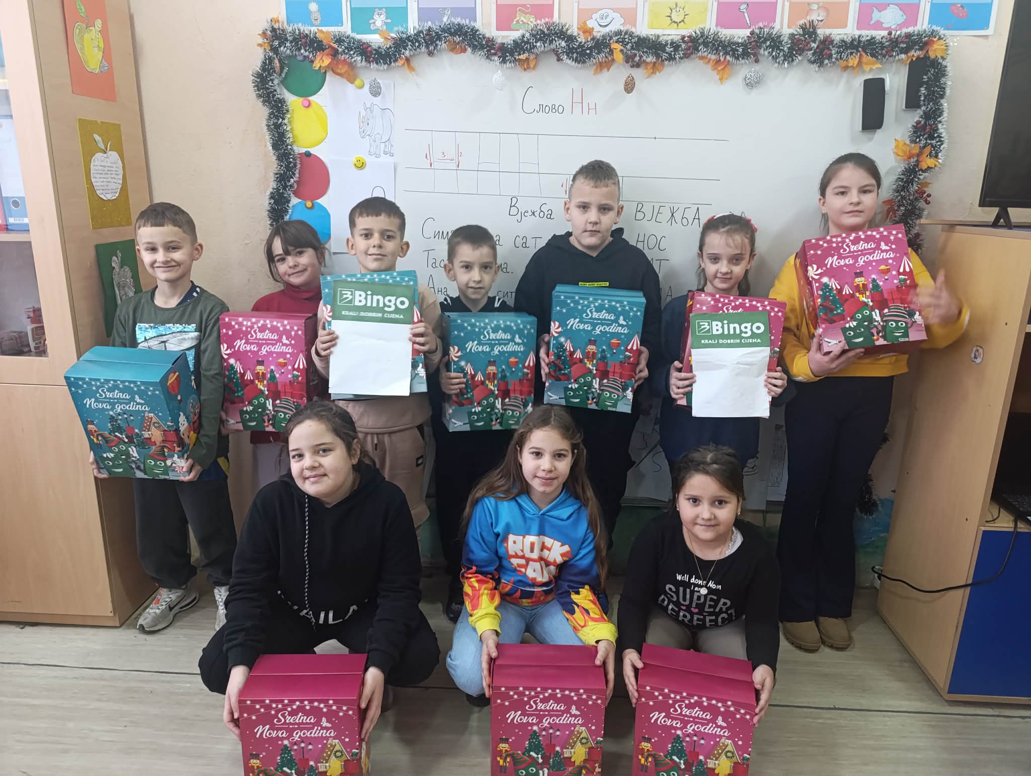 U prazničnom duhu i uz osmijehe najmlađih, učenicima od prvog do petog razreda u školama u Krizevićima, Kamenici, Orahovcu i gradu Zvorniku podijeljeno je oko dvije stotine novogodišnjih paketića.
