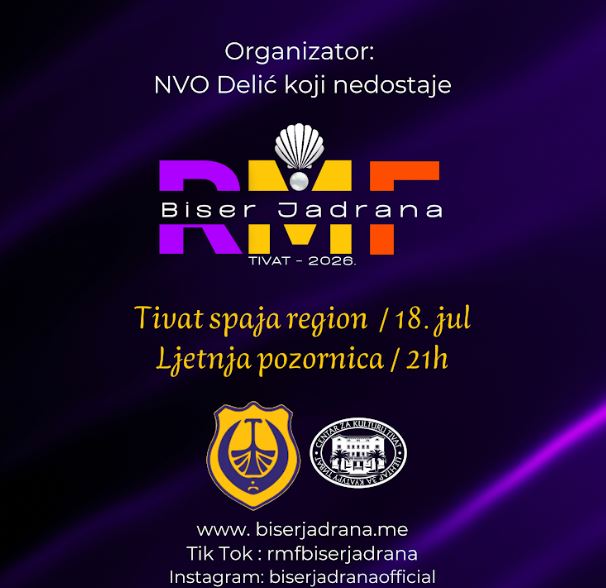 NVO Delić koji nedostaje poziva autore i izvođače iz Bosne i Hercegovine da se prijave za treći po redu Regionalni muzički festival RMF „Biser Jadrana“, koji će biti održan 18. jula 2026. godine na Ljetnjoj pozornici u Tivtu sa početkom u 21h.
