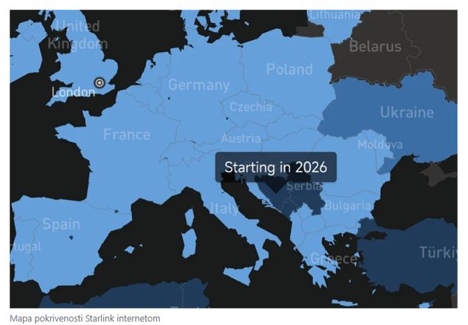 Još donedavno Bosna i Hercegovina je na službenoj mapi bila označena kao teritorija bez najave dolaska ovog servisa, što je kod mnogih izazivalo sumnju hoće li Starlink uopšte uskoro stići. Međutim, posljednje ažuriranje donijelo je konkretniju naznaku, 2026. godina sada stoji kao planirani period dostupnosti, što je prvi put da je naznačen okvirni rok.