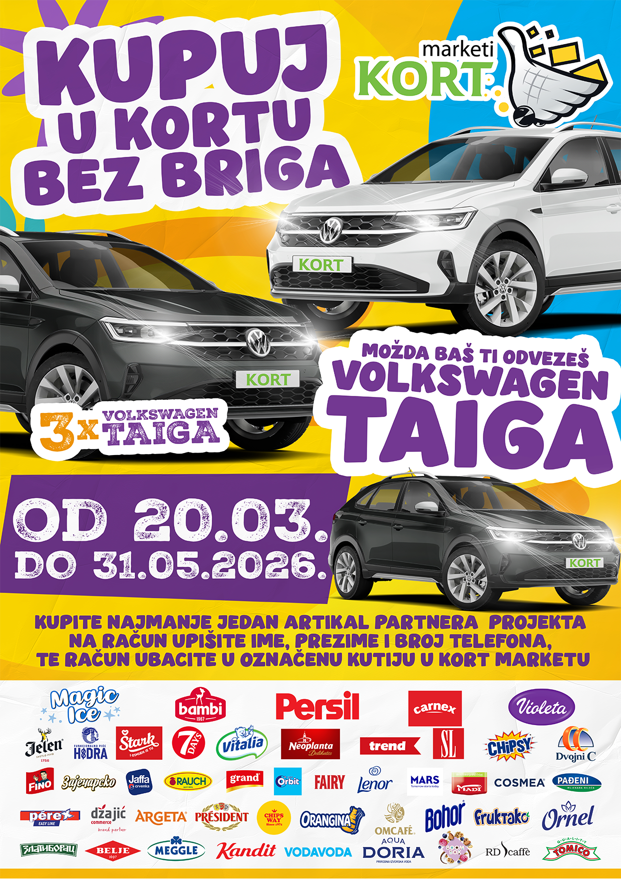 Pod sloganom „Kupuj u KORT-u bez briga – možda baš ti odvezeš Volkswagen Taigo“, organizovana je nagradna igra u kojoj učesnici mogu osvojiti čak tri nova automobila Volkswagen Taigo. Pored toga, pripremljene su i druge nagrade, uključujući iPhone 17 te 22 novčana poklon bona.